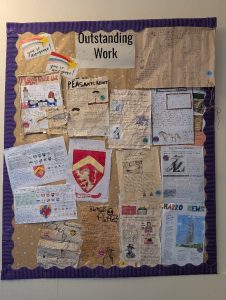 Mrs. Ennis reports, ‘In History, Year 7 were tasked with creating a newspaper front page reporting on either the Peasant Revolt or Black Death. They were building on their lesson knowledge about life in medieval England. The work produced by Year 7 was outstanding, there is not enough space to display all the amazing work.’